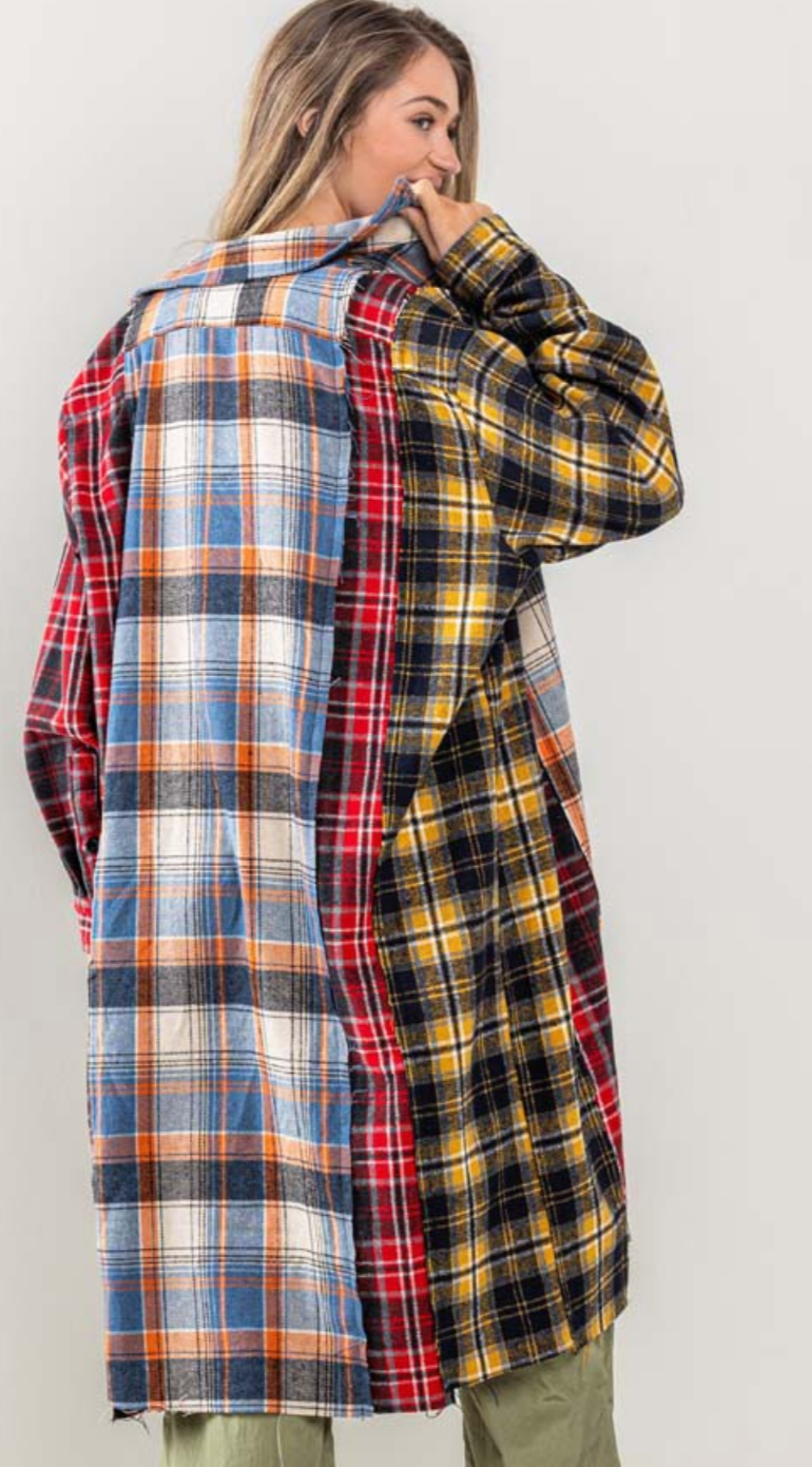 Elevate your style with our Long Sleeve Plaid Oversized Shirt Jacket. This slouchy silhouette, featuring a button front and a plaid print, effortlessly combines comfort and fashion. Perfect for a laid-back yet chic look.