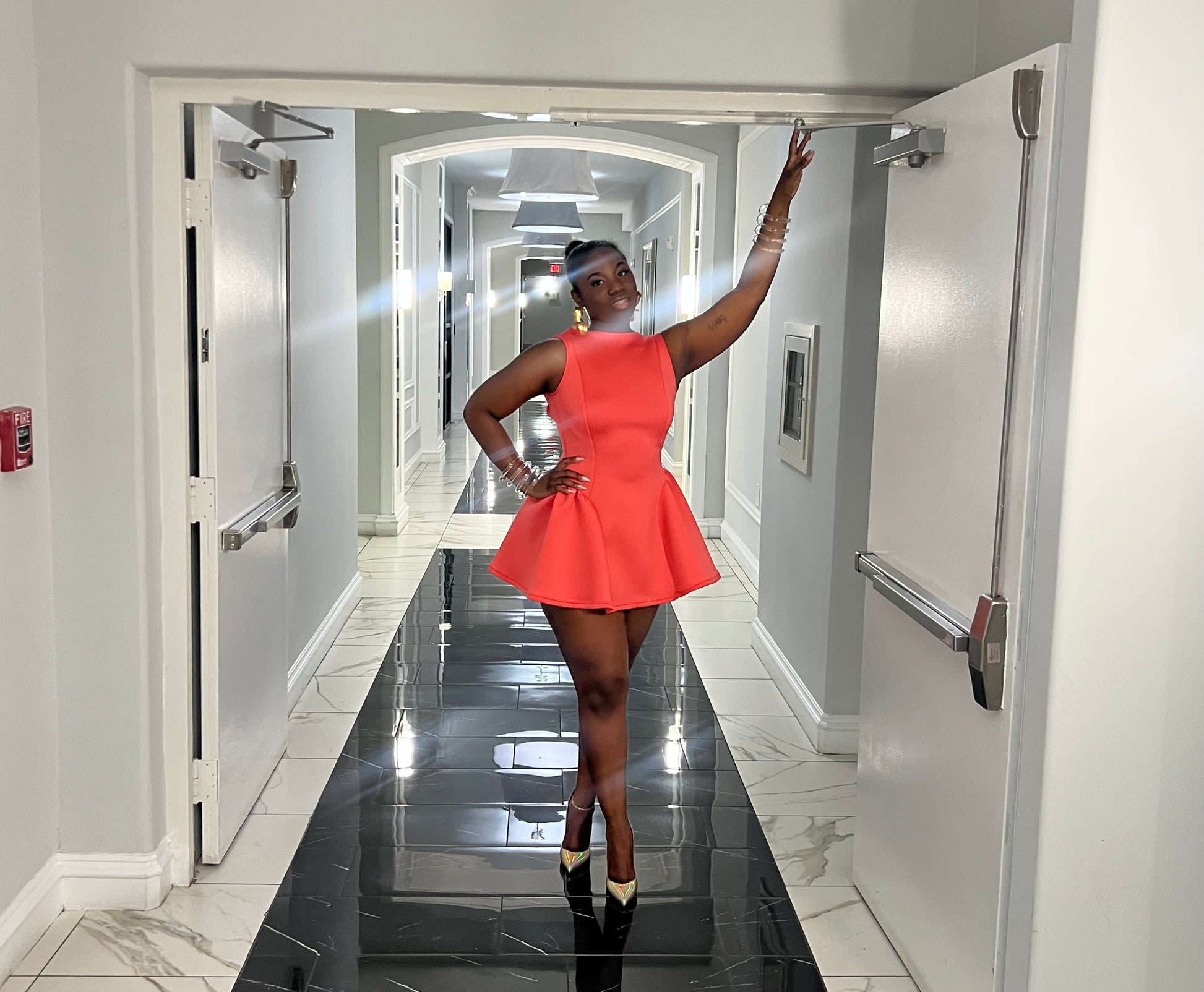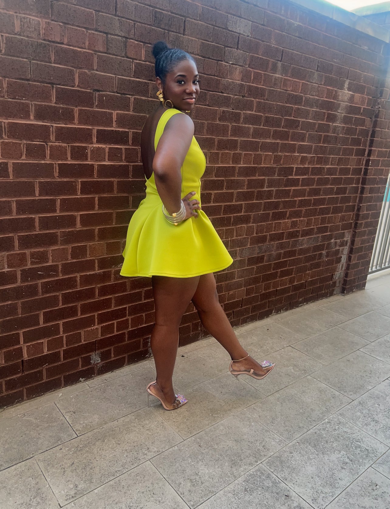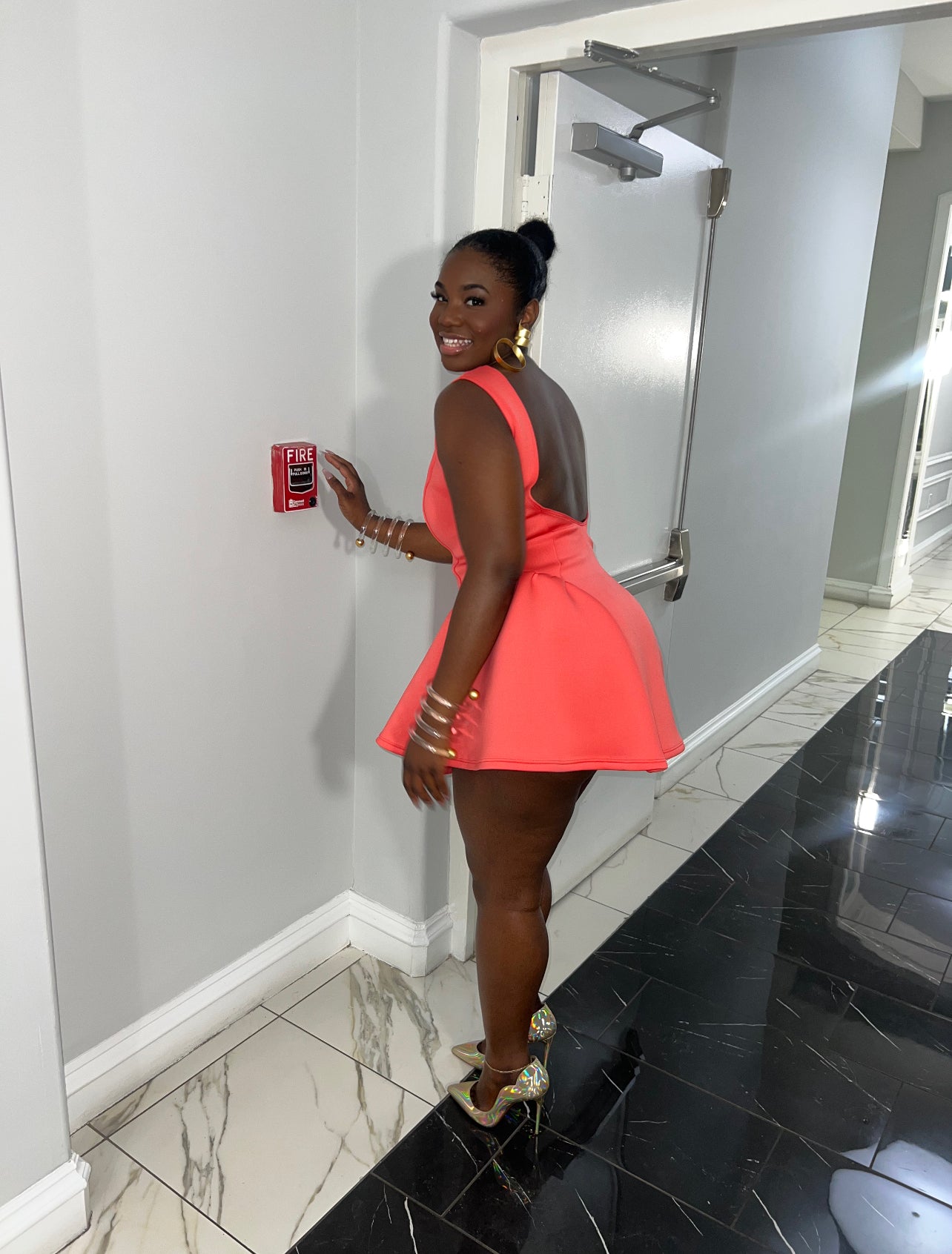 The BriElle Mini Ballerina Dress is playful elegance with a fierce twist. This sleeveless scuba mini features a high neckline, cinched waist, and a dramatic pleated skirt that flares with every step—serving major modern ballerina energy. The finishing touch? A low-cut open back that brings unexpected allure to this dainty silhouette. Available in vibrant coral and bold lime, it’s flirty, structured, and made to twirl into the spotlight.