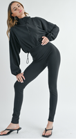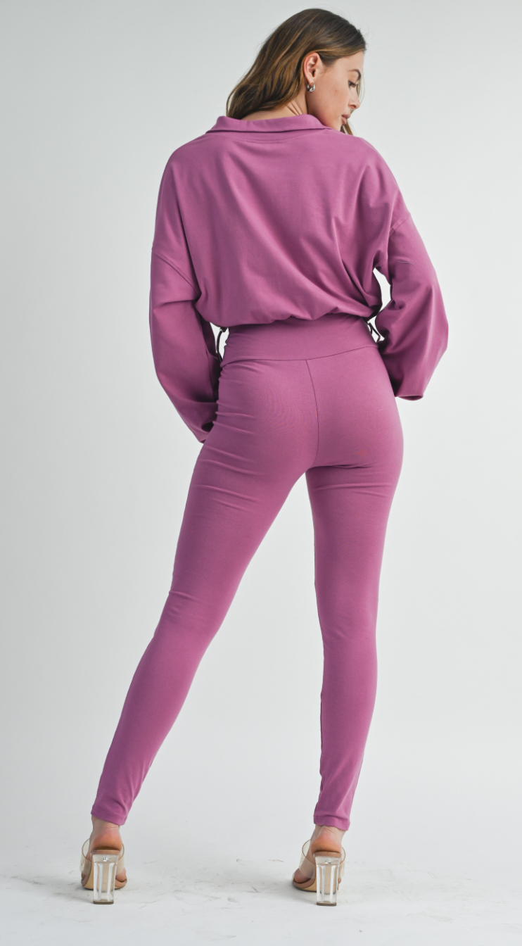 Elevate your athleisure wardrobe with this chic two-piece set, available in black and magenta. Featuring a zip-up cropped pullover with drawstring details and matching high-waisted leggings, this set offers a sleek, comfortable fit for lounging or stepping out in style. Perfect for casual outings or effortless style upgrades.