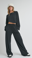✔ Two-piece lounge set (crop top + wide-leg pants)