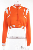 Stay cozy and chic on those crisp fall nights with our trendy crop baseball jacket. Available in striking orange and white, as well as classic black and white, this jacket is the perfect blend of fashion and function. Don't compromise style for warmth - grab yours today and stand out in the autumn crowd!