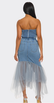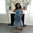 All eyes on you, sis. The Denim Drama Set is your unapologetically bold two-piece made to stir up the scene. Featuring a structured strapless crop top and a high-waisted denim skirt with sheer tulle flare detail, this look mixes street edge with soft glam. Whether you’re brunch-bound or shutting down date night, this is the moment.