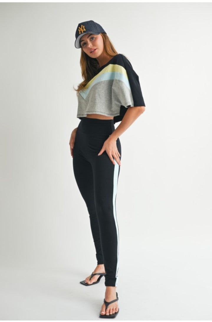 ✔ High-waisted leggings with elongating side stripe detail