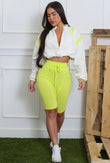 Sporty meets sassy in the Fast Lane Flirt Set—a bold two-piece look that keeps it cute and confident. The cropped zip-up jacket features striking contrast stripes, while the matching high-waisted biker shorts bring effortless stretch and shape. Available in two vibrant colorways—neon yellow and hot pink—this set gives flirty-meets-functional in the most fire way.