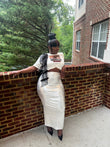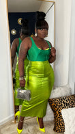 Shine Bright in Style with Our Metallic Silver or Green Maxi Skirt! High Waist Elegance meets Daring Back Split. Get Yours Now for a Glamorous Look!