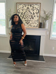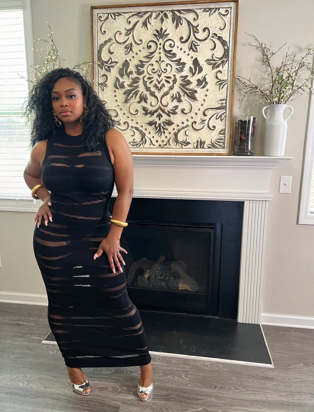 Turn heads and break hearts in the Night Slashed Sheer Maxi Dress—a bold, body-hugging silhouette with fierce attitude. This sleeveless black dress features daring slashed mesh detailing throughout, giving just the right amount of skin while keeping it sleek and sexy. Stretchy and fitted to sculpt your curves, this look is made to command attention from every angle.