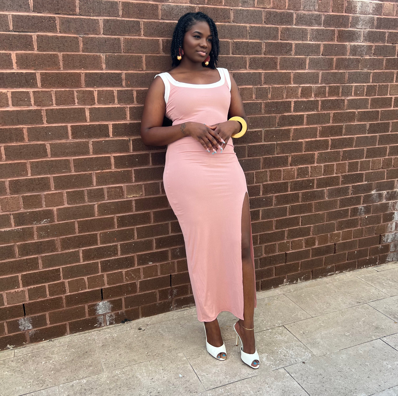 Sleek and sexy, the Contrast Cutie Slit Maxi brings stretch and drama in all the right ways. With its bodycon fit, bold white trim, and side slit detail, this ribbed tank dress lets your shape do the talking—day or night. Available in black or pink