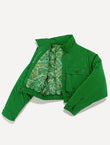 Dazzle in style with our Emerald Green Shiny Puffer Cropped Bomber Jacket. This head-turning piece comes with two front pockets for convenience and a snap-button closure for a touch of sophistication. Embrace the trend – make it yours today!