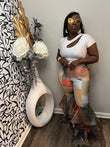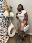 Brighten up your wardrobe with these multi-color high-waist pants featuring a bold swirl pattern and layered wide-leg design. Crafted from a blend of 90% Polyester and 10% Spandex, these stretch pants offer a comfortable, flattering fit with a high-waisted elastic waistband and a 32-inch inseam. The elegant color palette—nude, blush, gold, blue, green, and peach—makes these pants perfect for any occasion, whether you’re dressing up or keeping it casual.