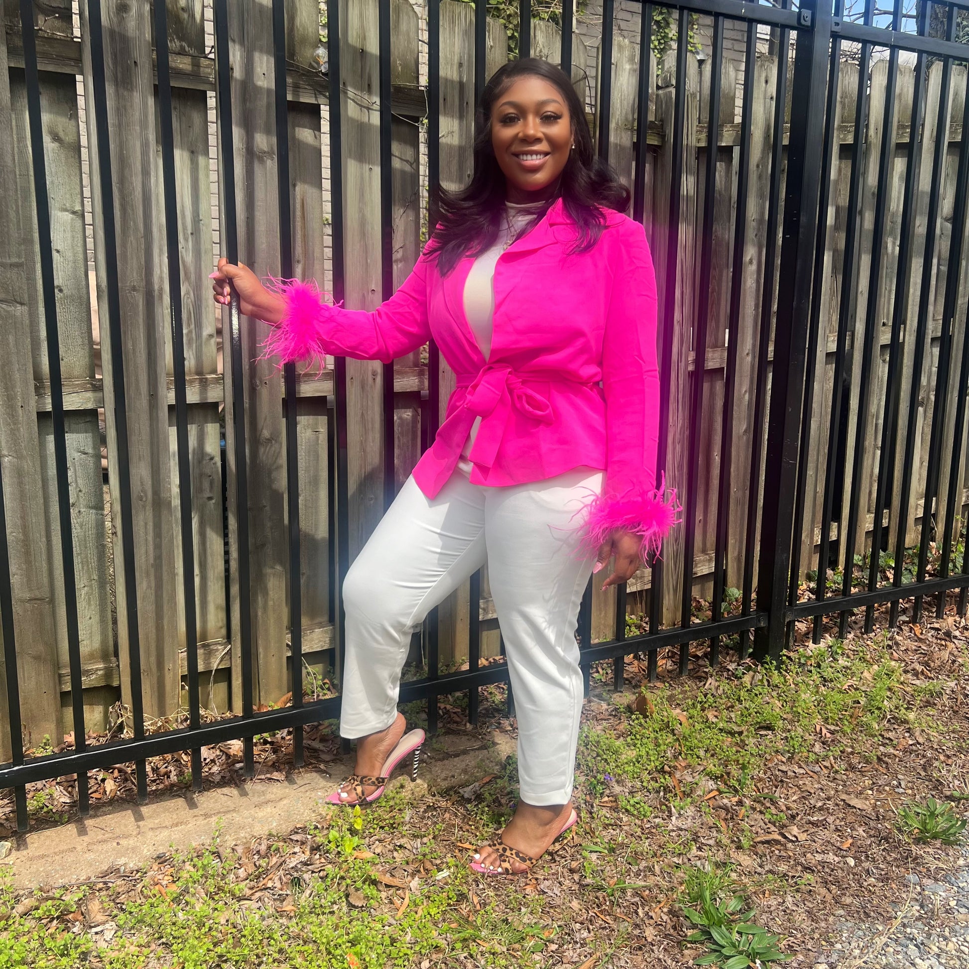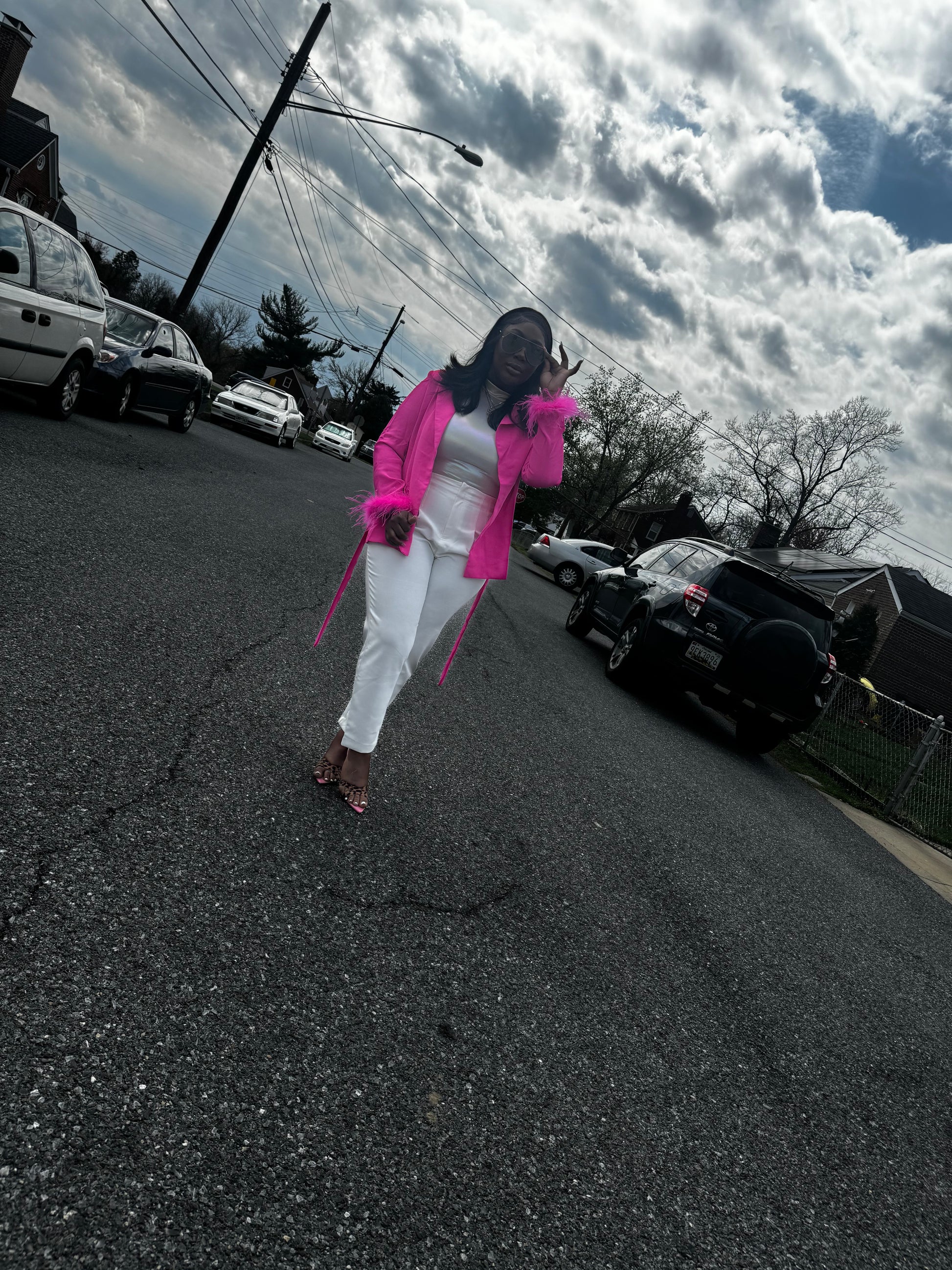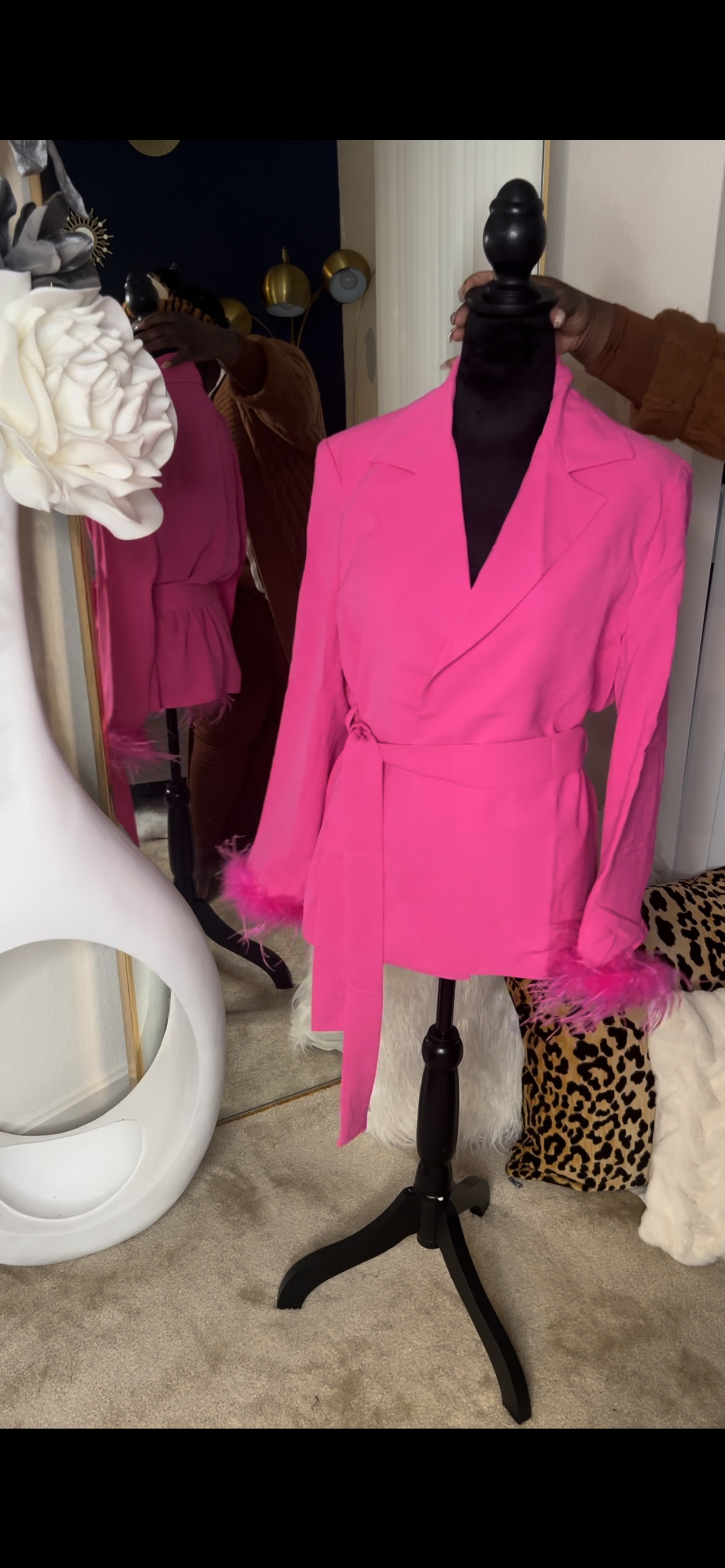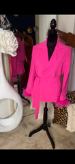 Stay stylish and cozy with our vibrant pink Solid Jacket. This chic piece features a notched collar, self-tie waistline, and long sleeves adorned with faux fur trimming. With an open front design, it's both lightweight and non-sheer, perfect for adding a pop of color to any outfit.