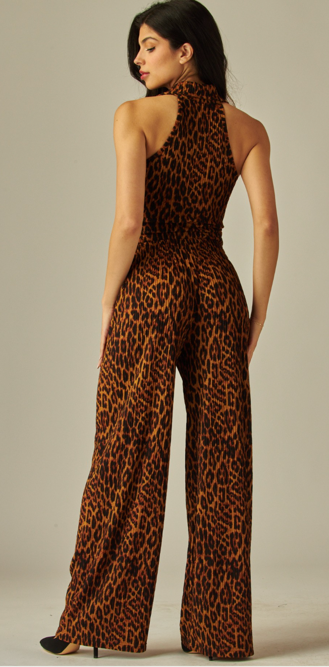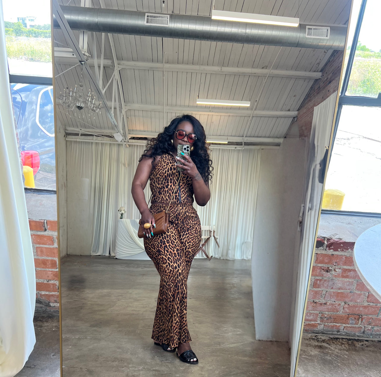 Unleash your inner baddie in the Wild Side Zip Set—a fierce two-piece featuring a sleeveless zip-up collared crop top and matching high-waisted wide-leg pants in a bold leopard print. The stretchy pleated fabric hugs your curves while letting you move with ease. It’s giving confident, sexy, and unapologetically wild.
