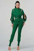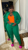 Elevate Your Casual Chic with our Emerald Green Jogger Set! Zipper Accents, Semi-Crop Jacket, and High-Waist Joggers for Trendsetting Comfort. Shop Now!